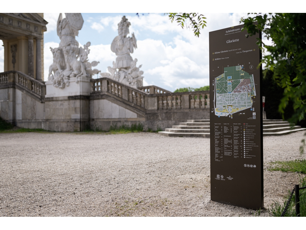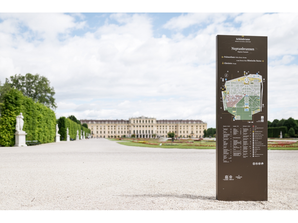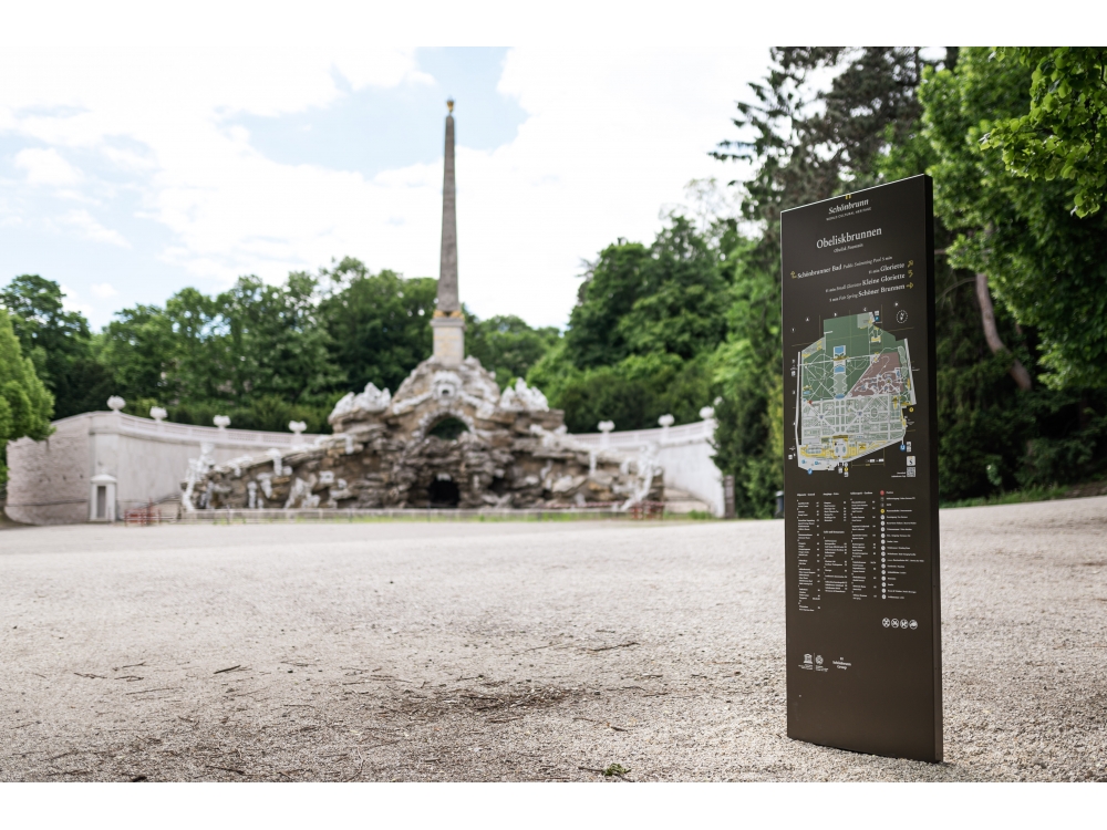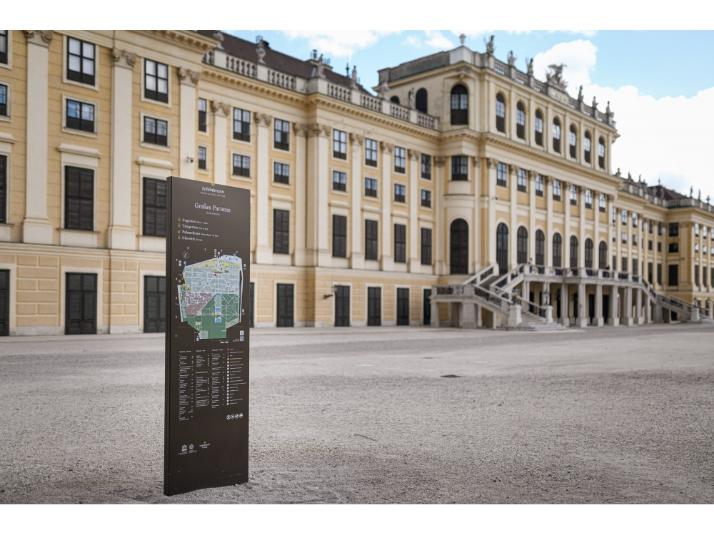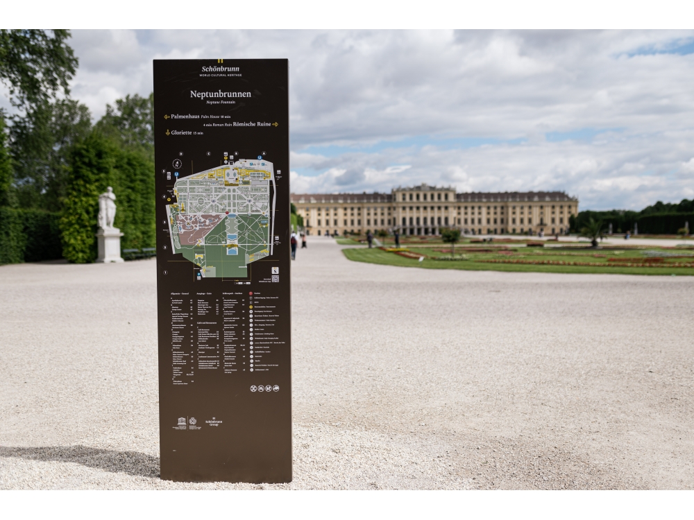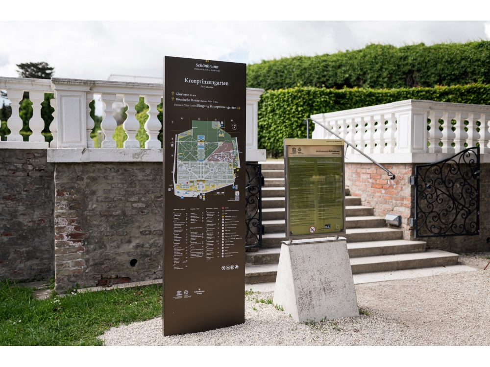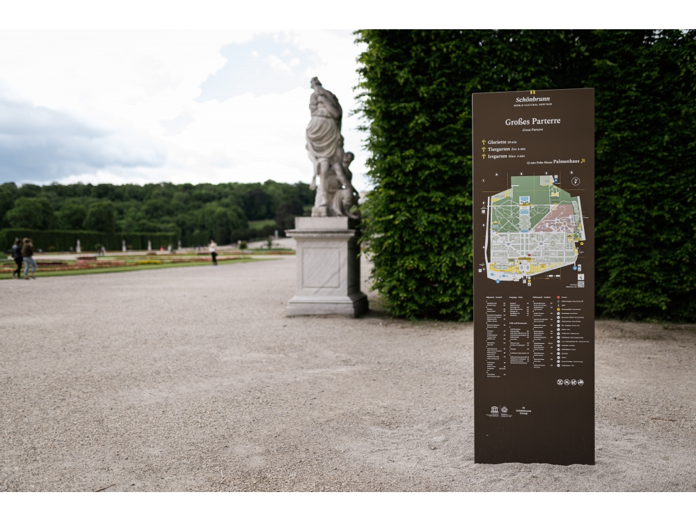 Im 160 Hektar großen Schlosspark Schönbrunn wurden neue Informationstafeln aufgestellt, die den Wienern und Touristen die Orientierung in diesem großen Park erleichtern sollen.