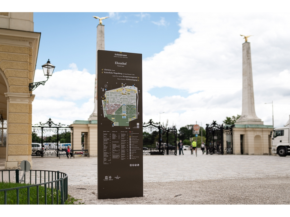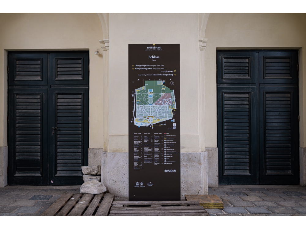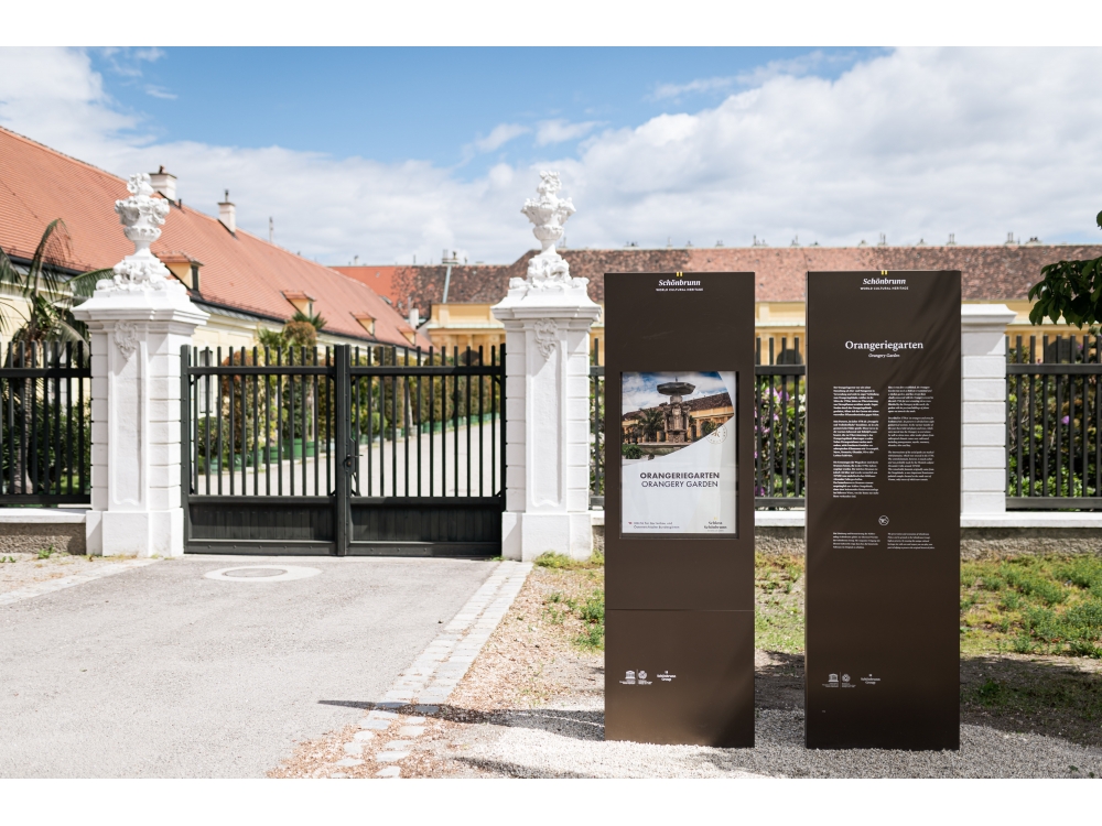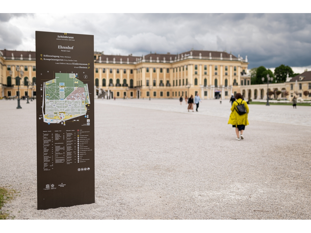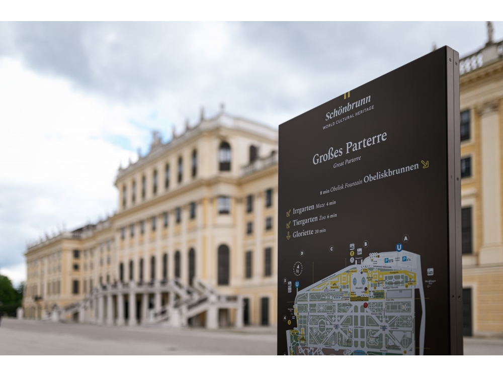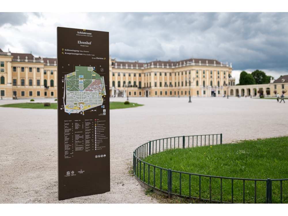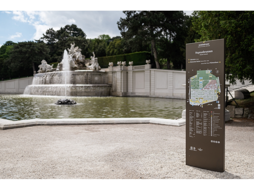 Im 160 Hektar großen Schlosspark Schönbrunn wurden neue Informationstafeln aufgestellt, die den Wienern und Touristen die Orientierung in diesem großen Park erleichtern sollen.